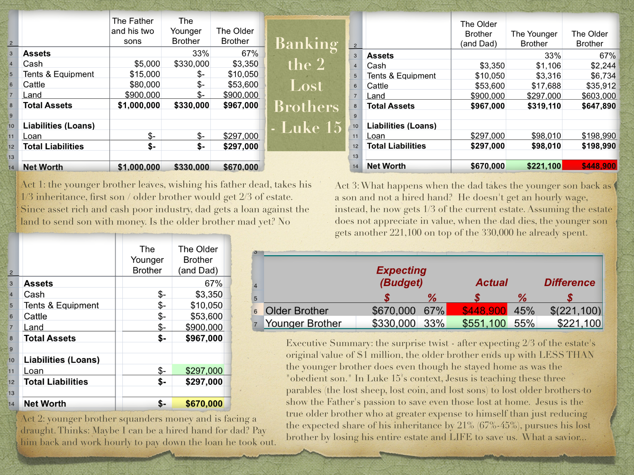 What would the balance sheet looked like for the Parable of the Prodigal son? – Remember, BOTH sons were lost :-)
