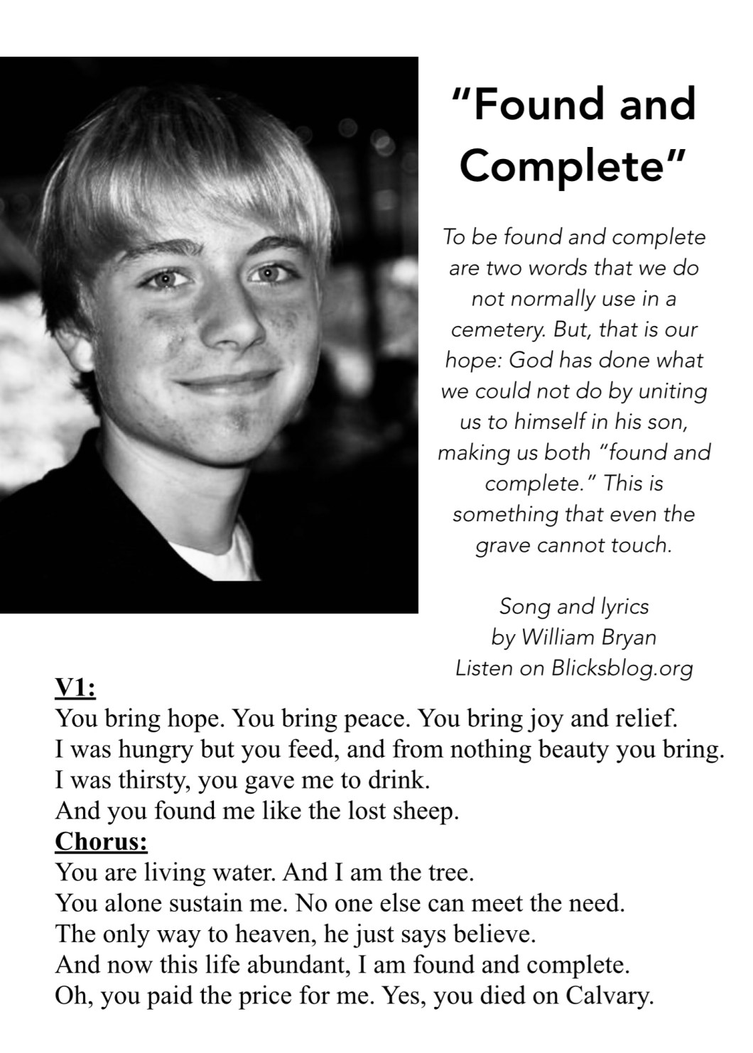 Missing Jackson terribly. I put this 5×7 on his grave stone last night. Glad to have the day off to be quiet with Jodi and the kids, missing Justine’s presence with me while she is in Chattanooga. Thankful for the truth and hope in Will’s song. Click the picture below to read the lyrics and my reflection.