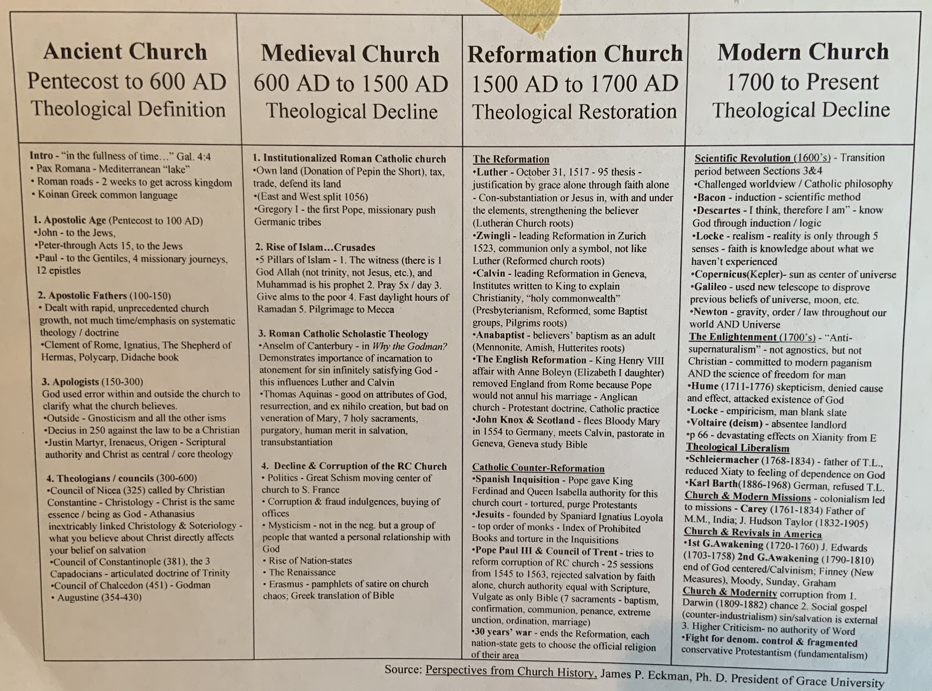 I ran across this today in going through some things in my office. Very helpful to see a quick summary and markers by which to place key events in history with what was going on in the church as well!