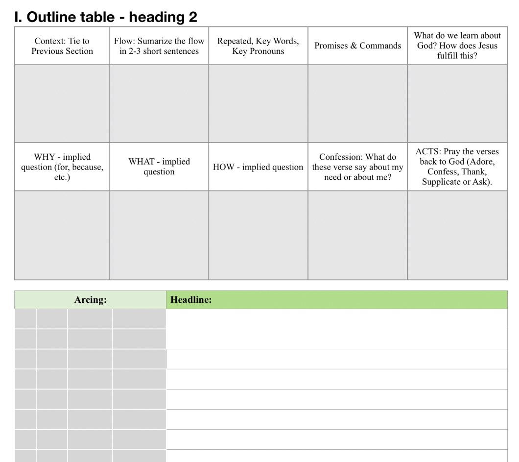 Arcing is a way to trace an argument by a writer. The Bible argues, and arcing is a great tool to identify the logical flow of a passage. It is a tool most helpful in understanding the Epistle letters and other conversation-like passages of the Bible, may not be so helpful in narrative genres.